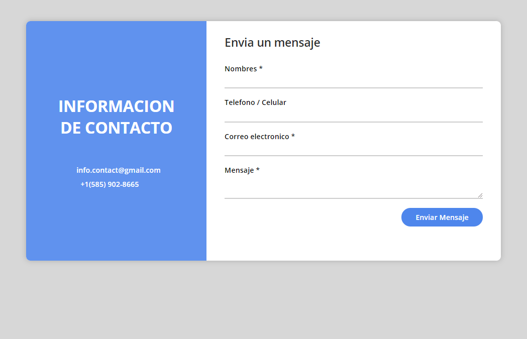 El formulario de contacto con diseño limpio es un formulario de contacto elegantemente diseñado, la mejor opción para tus sitios web a fin de brindarle un encanto especial a tu sitio web debido a su aspecto sobresaliente e hipnótico. Este magnífico formulario de contacto se puede utilizar en todas tus páginas web, especialmente en tu página de contacto o sección de contacto en tu sitio web