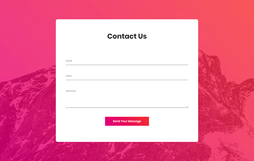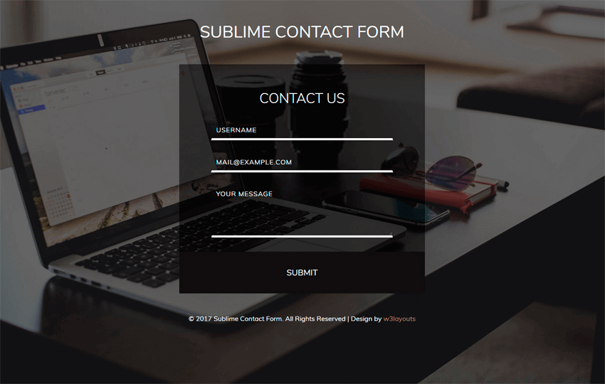 El contenido del formulario está diseñado sobre un fondo transparente oscuro con campos de texto principal que tienen solo el borde inferior en color blanco y cuando se hace clic en estos campos de texto de entrada, el texto sube de una manera animada impresionante que da un aspecto llamativo al formulario. Este formulario 100% responsive, compatible con todos los dispositivos y se muestra en todos los tamaños de pantalla. Está completamente construido en HTML5, CSS3 y JQuery.